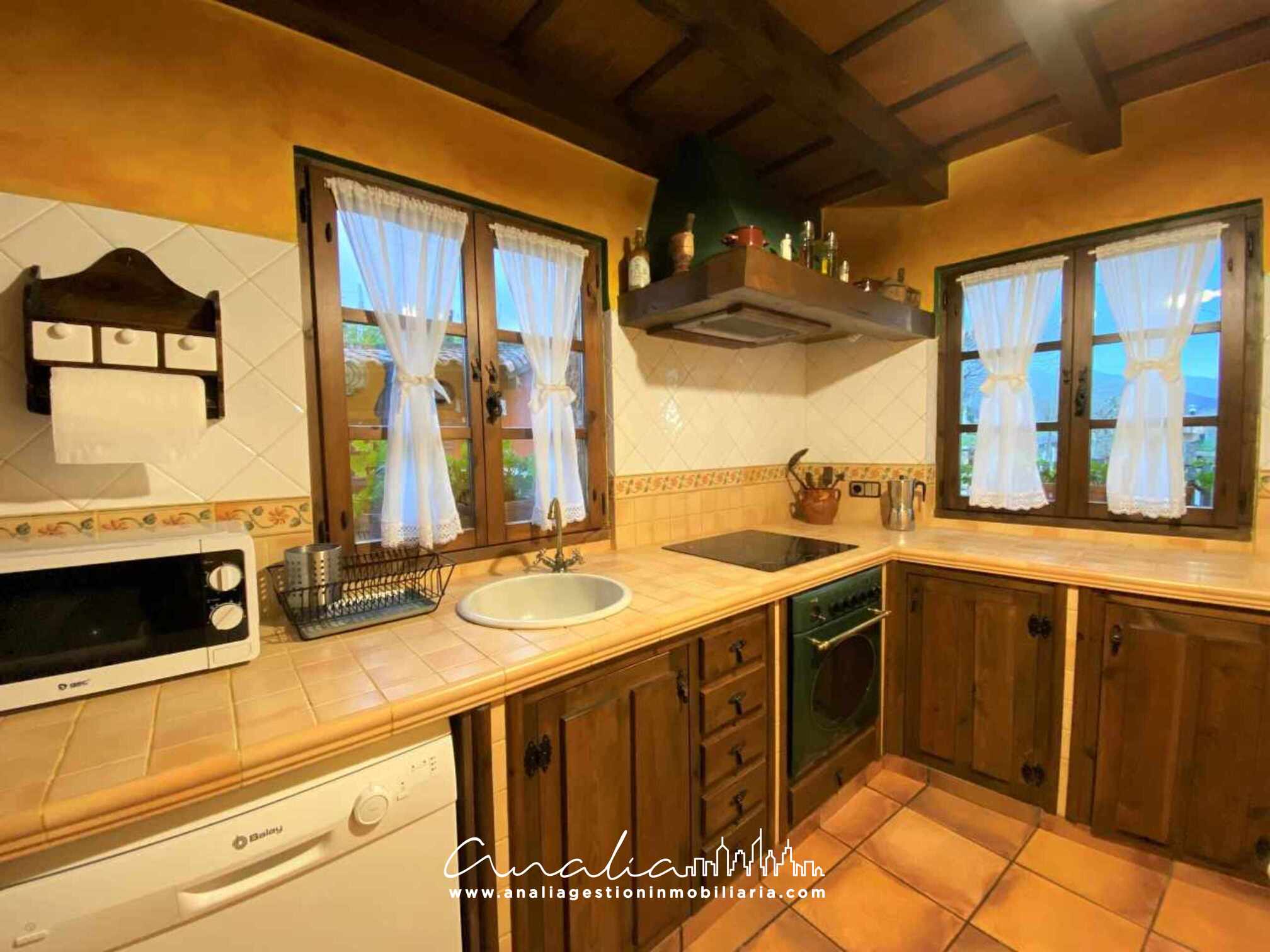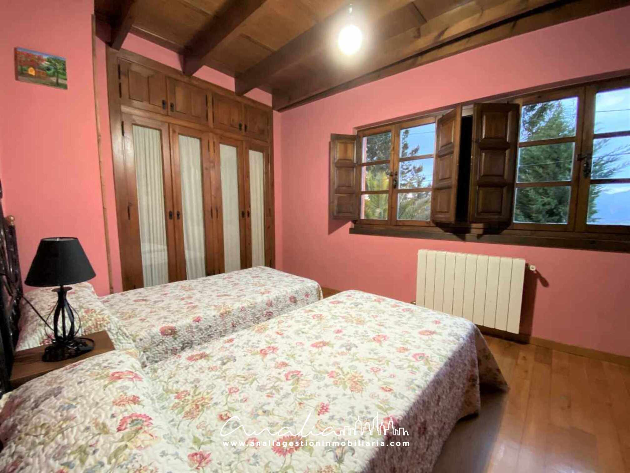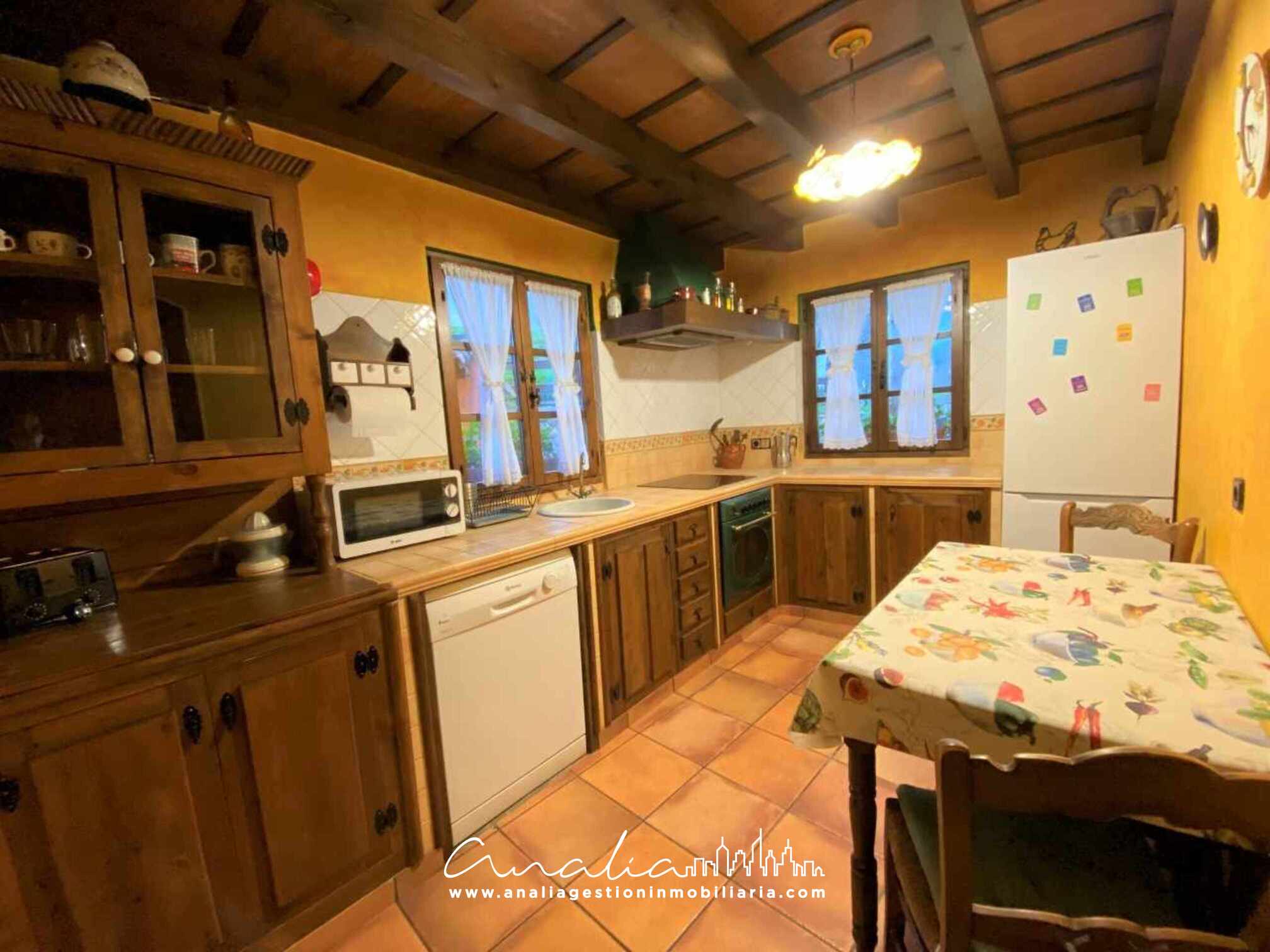 Hermosa Casa rústica de dos plantas con capacidad para 6 a 7 personas. Cuenta con tres dormitorios, uno de ellos con cama matrimonial y baño en suite, otro también con cama matrimonial y un tercero con dos camas individuales. Tiene otro baño completo en el pasillo, un gran salón comedor con chimenea y salida al jardín, cocina totalmente equipada, amplio jardín con zona de barbacoa y porche con mesa y sillas para disfrutar en almuerzo o cena en familia. Ubicada en un entorno natural de una pequeña aldea llamada Cuadroveña; con unas increíbles vistas de los Picos de Europa, la Sierra del Sueve; situada a pocos minutos de la capital del municipio de Parres, Arriondas, donde encontraréis todos los servicios que necesitéis y una gran oferta de turismo activo!!